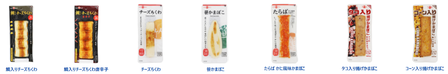 製品ラインナップは、ホモソーセージ、チーかまをはじめ、おでん、惣菜、スポーツフードなど、多彩なジャンルと種類を取り揃えています。