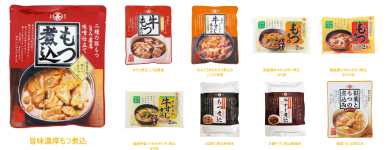 今回の見学した中にはありませんでしたが、煮込みシリーズも人気のある商品です。ご家庭で作ると手間がかかるもつ煮込みなど、本格的な味わいを温めるだけで手軽に食べられます。