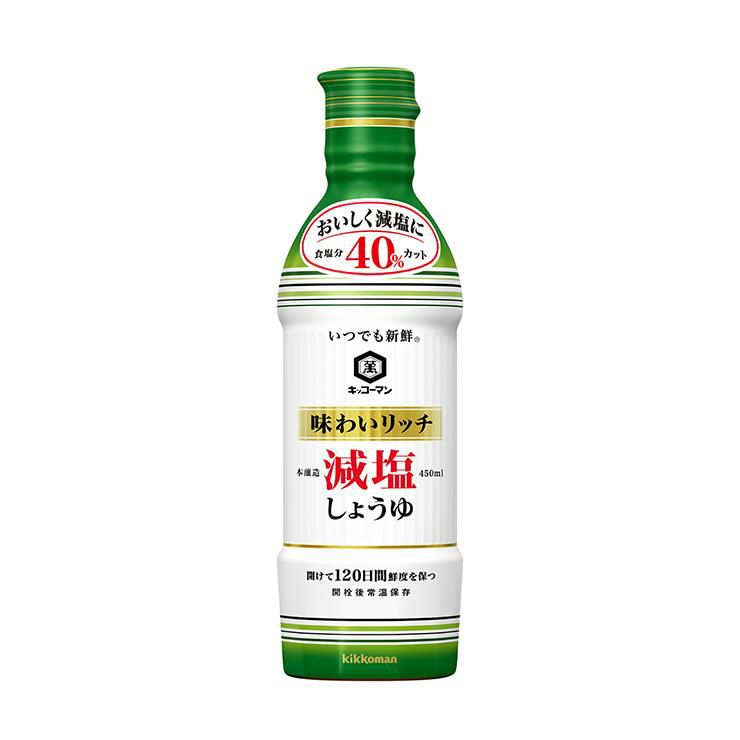キッコーマン 醤油 いつでも新鮮 味わいリッチ 減塩しょうゆ 450ml 12本 キッコーマン食品