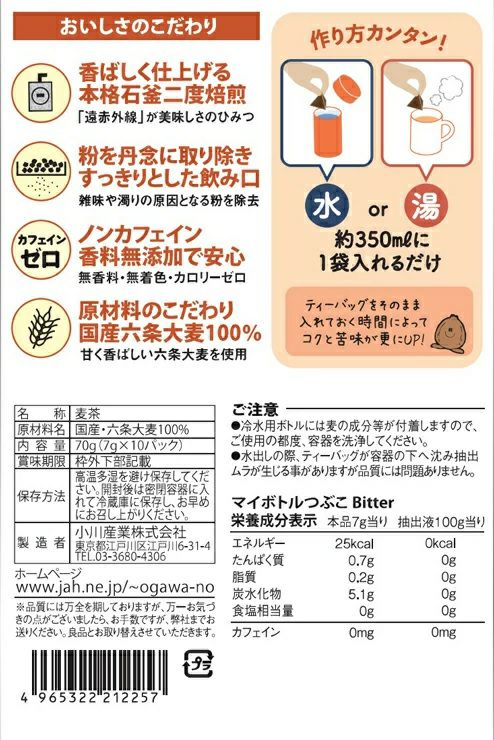小川の麦茶 マイボトルつぶこ Bitter 10P 20袋 小川産業 水出し ホット