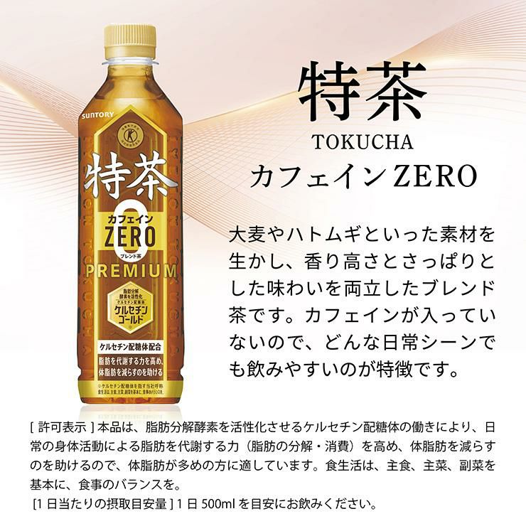 他の画像を見る 【4本お試し】 特茶 カフェインZERO 500ml 20本 +お試し4本 1ケース 24本 サントリー カフェインゼロ 特定保健用食品 トクホ 特保 PET ¥ 4,180 税込 在庫切れ 詳細を見る お気に入りに登録する