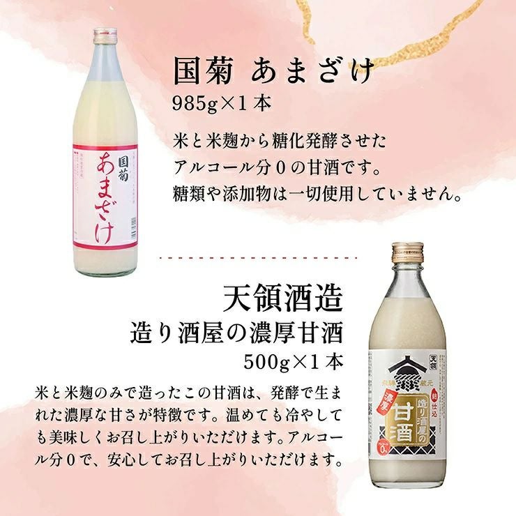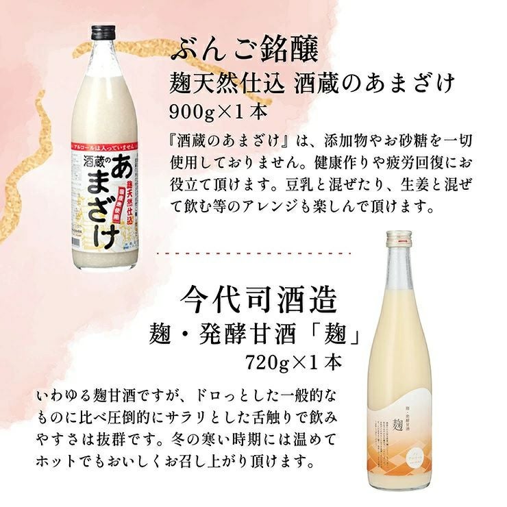 他の画像を見る あまざけ 国菊 ぶんご銘譲 甘酒 飲み比べ 4本セット 今代司酒造 天領酒造 米麹 ノンアルコール アソート プレゼント 健康飲料 ホット ドリンク 送料無料 ¥ 4,250 税込 詳細を見る お気に入りに登録する