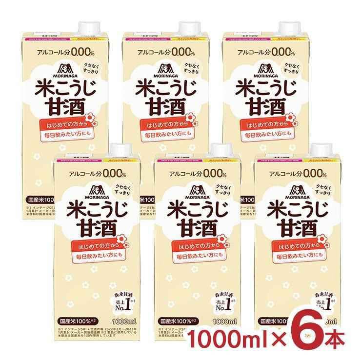 森永製菓 森永 あまざけ 甘酒 森永のやさしい米麹甘酒 1000ml 6本 1ケース 米麹 米こうじ ノンアルコール 紙パック 大容量 定番 健康 美容 ホット ドリンク
