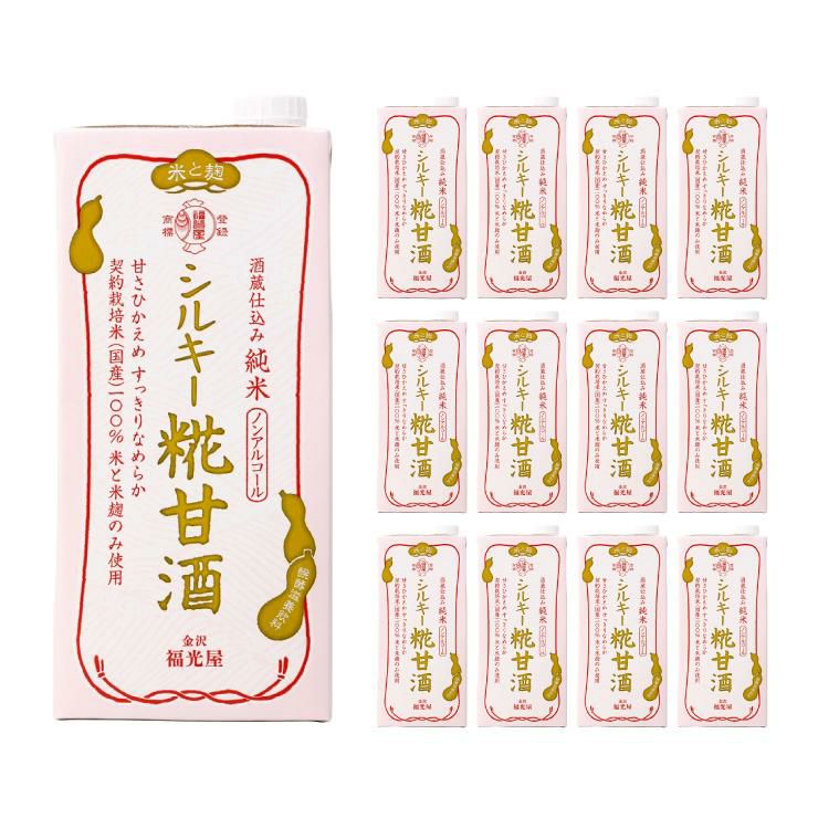 甘酒 あまざけ 福光屋 酒蔵仕込み 純米 シルキー糀甘酒 1000ml 12本(6本×2ケース) 酒蔵 米麹 ノンアルコール 飲む点滴 健康飲料 ホット ドリンク