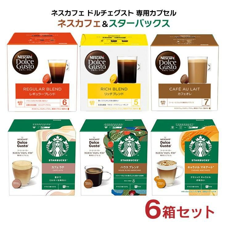 ドルチェグスト カプセル コーヒー 6箱アソート 16P 3箱、スターバックス 12P 3箱 ネスカフェ スタバ