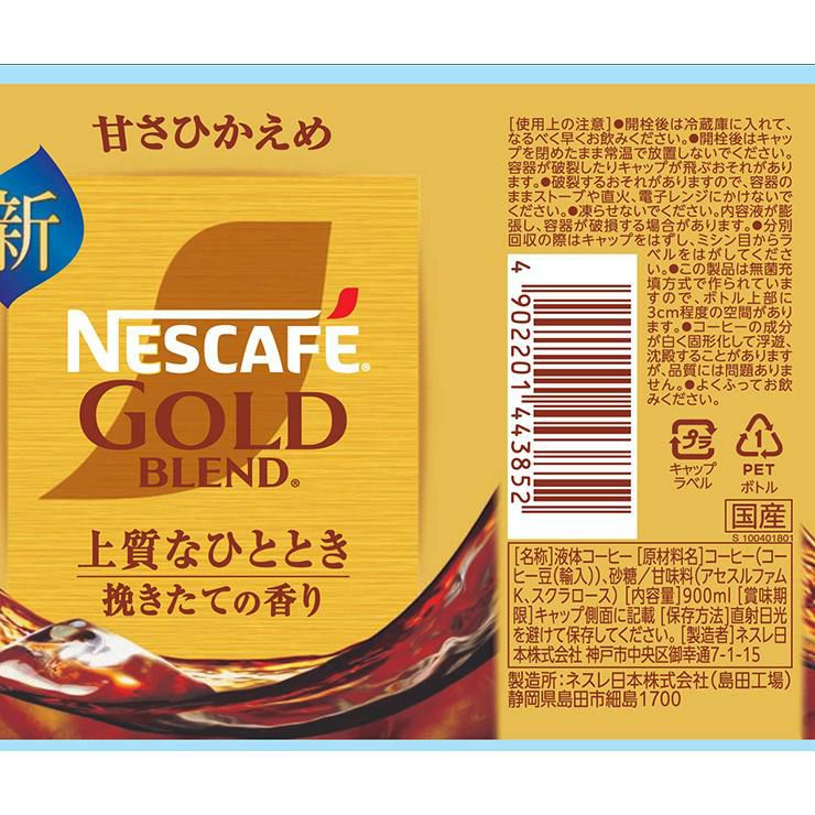 他の画像を見る ゴールドブレンド 上質なひととき ボトルコーヒー甘さひかえめ 900ml 24本 コーヒー 飲料 ネスレ ネスカフェ ペットボトル 珈琲 ¥ 5,230 税込 詳細を見る お気に入りに登録する