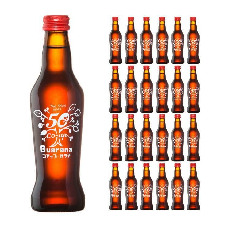 ガラナ本来の効能をフルに発揮させるため、ガラナエキスをふんだんに使用。ピリッとっした刺激が心地よい大人のソーダは、神経衰弱や疲労回復などにも効果があるといわれる健康ドリンクとしても注目を集めています。ちなみにコアップガラナのボトルの形は、京舞妓の立ち姿のフォルムをイメージしたもの。発売開始の昭和35年当時、女性とふくらんだスカートの形をあしらったというアメリカの飲料ボトルにヒントを得てのデザインで爆発的な人気を博しました。