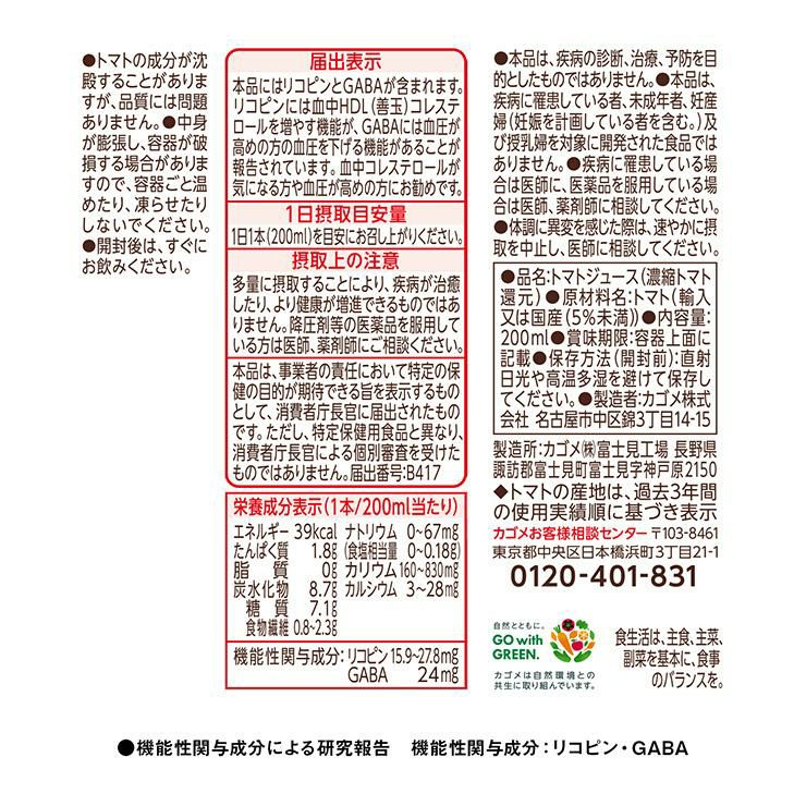 他の画像を見る カゴメ トマトジュース 食塩無添加 200ml 72本 紙パック 機能性表示食品 トマト 100% ジュース リコピン GABA 血中コレステロール 血圧 ¥ 7,260 税込 詳細を見る お気に入りに登録する