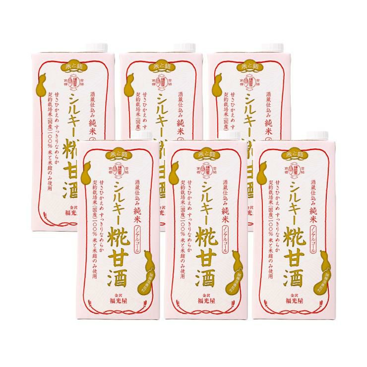 ホットドリンク 甘酒 あまざけ 福光屋 酒蔵仕込み 純米 シルキー糀甘酒 1000ml 6本 紙パック 酒蔵 米麹 ノンアルコール 飲む点滴 健康飲料 ホット ドリンク