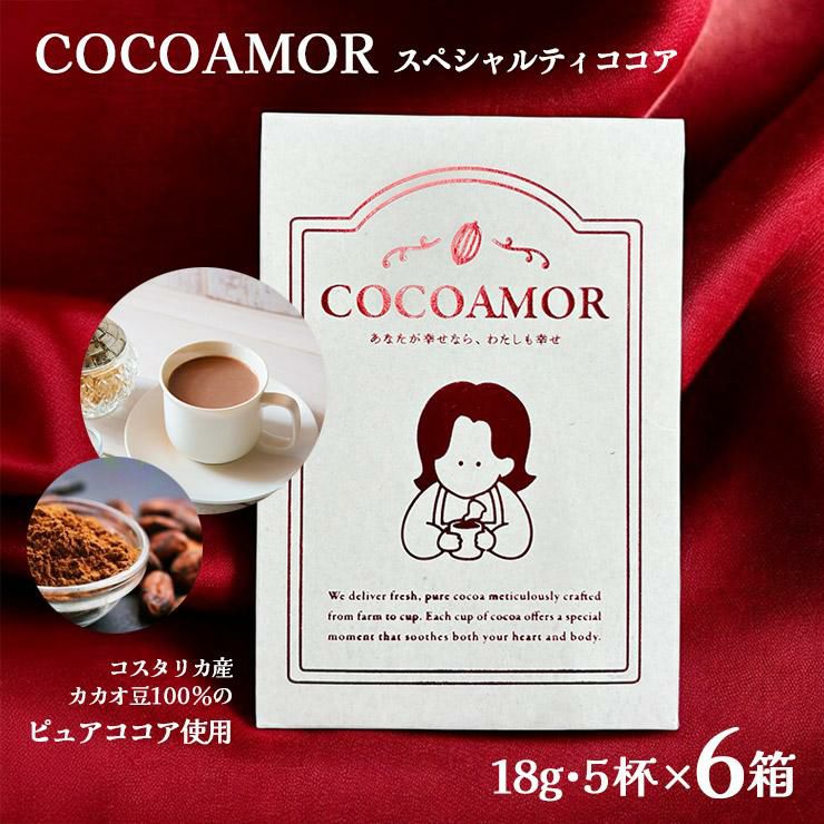 ココア COCOAMOR ココアモール 18g×5杯 6箱 ココアムール 無添加 無香料 無着色 ピュアココア cocoa パウダー 黒糖ブレンド コスタリカ