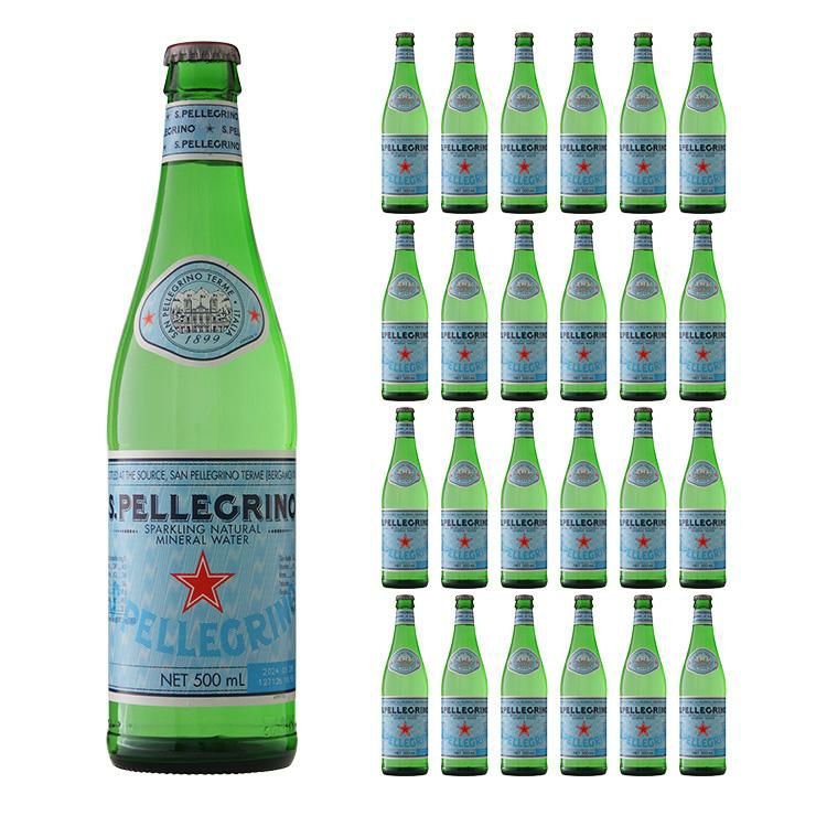 サンペレグリノ 炭酸入り ナチュラル ミネラルウォーター 500ml 24本 瓶 正規輸入品 イタリア 日仏貿易
