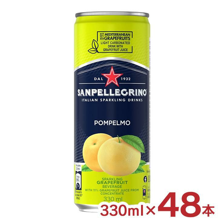 ミネラルウォーター 炭酸水 サンペレグリノ ポンペルモ 缶 330ml 48本 日仏貿易 微炭酸 グレープフルーツ イタリア