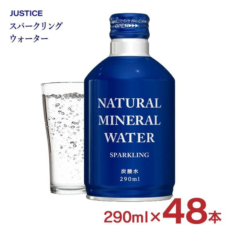 炭酸水 ミネラルウォーター 防災 ボトル 缶 ジャスティス ナチュラルミネラルウォータースパークリング 290ml 48本 保存水 備蓄