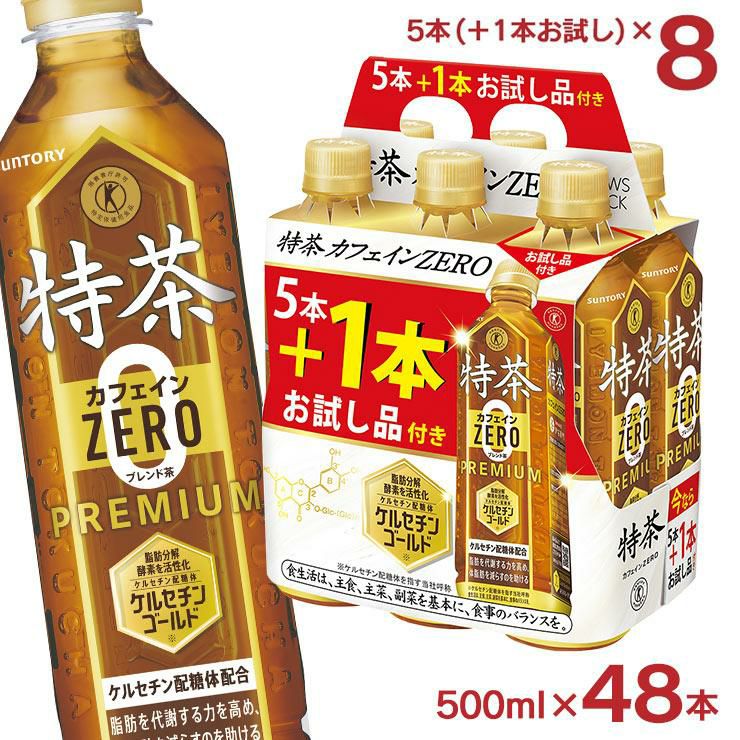 【8本お試し】 特茶 カフェインZERO 500ml 40本 +お試し8本 2ケース 48本 サントリー カフェインゼロ 特定保健用食品 トクホ 特保 PET