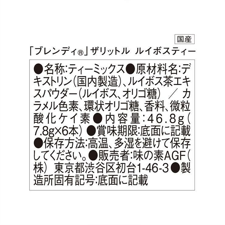 他の画像を見る ルイボスティー パウダー ブレンディ (R) ザリットル ルイボスティー (7.8g 6本入) 12箱 ノンカフェイン 味の素AGF ¥ 5,936 税込 詳細を見る お気に入りに登録する