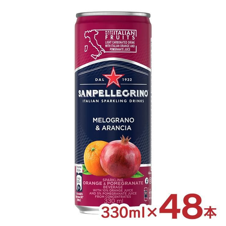 ミネラルウォーター 炭酸水 サンペレグリノ メログラーノ アランチャ 缶 330ml 48本 日仏貿易 微炭酸 オレンジ ザクロ