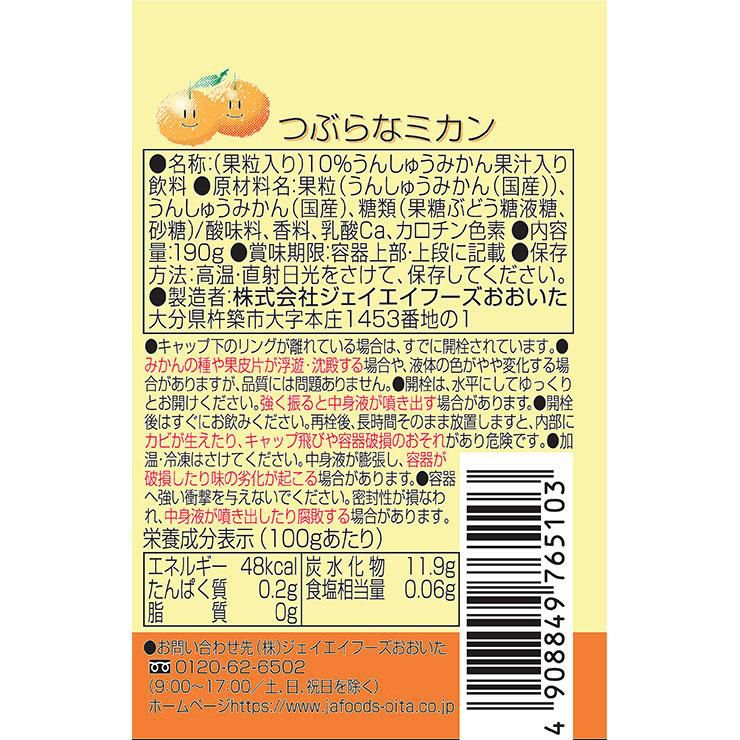 他の画像を見る つぶらな みかん ジュース つぶらなミカン JAフーズおおいた 190g 60本 缶 大分県 柑橘 つぶらなシリーズ JA ¥ 7,600 税込 在庫切れ 詳細を見る お気に入りに登録する
