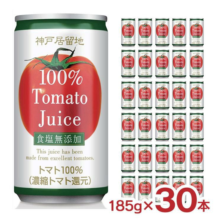 トマト ジュース 富永貿易 神戸居留地 完熟トマト100% 缶 無塩 185g 30本 保存料 着色料 不使用 食塩無添加 国内製造