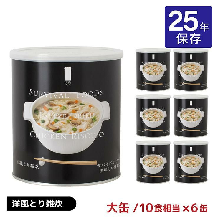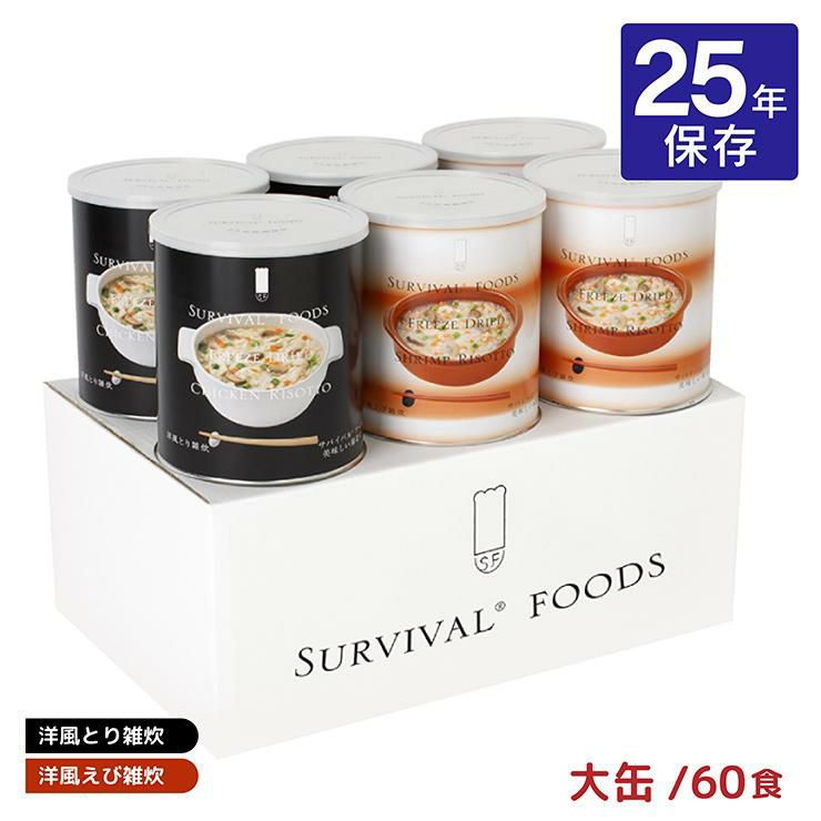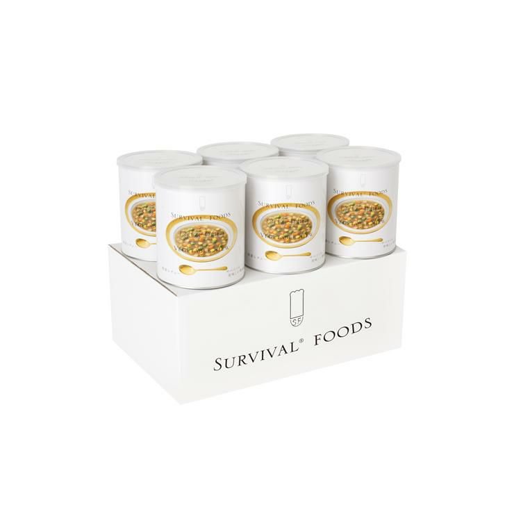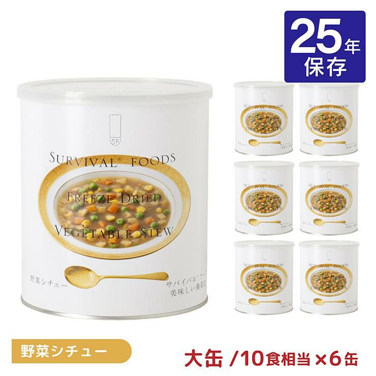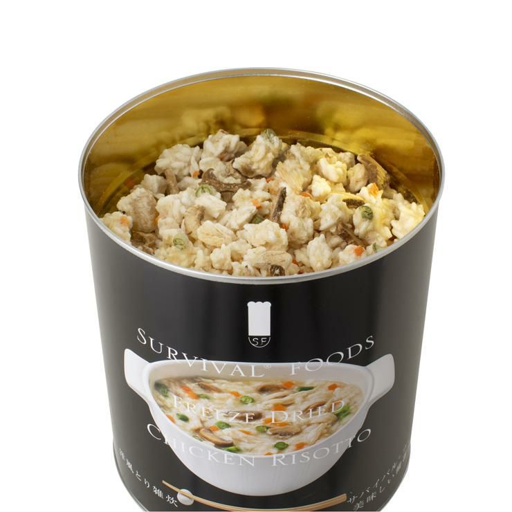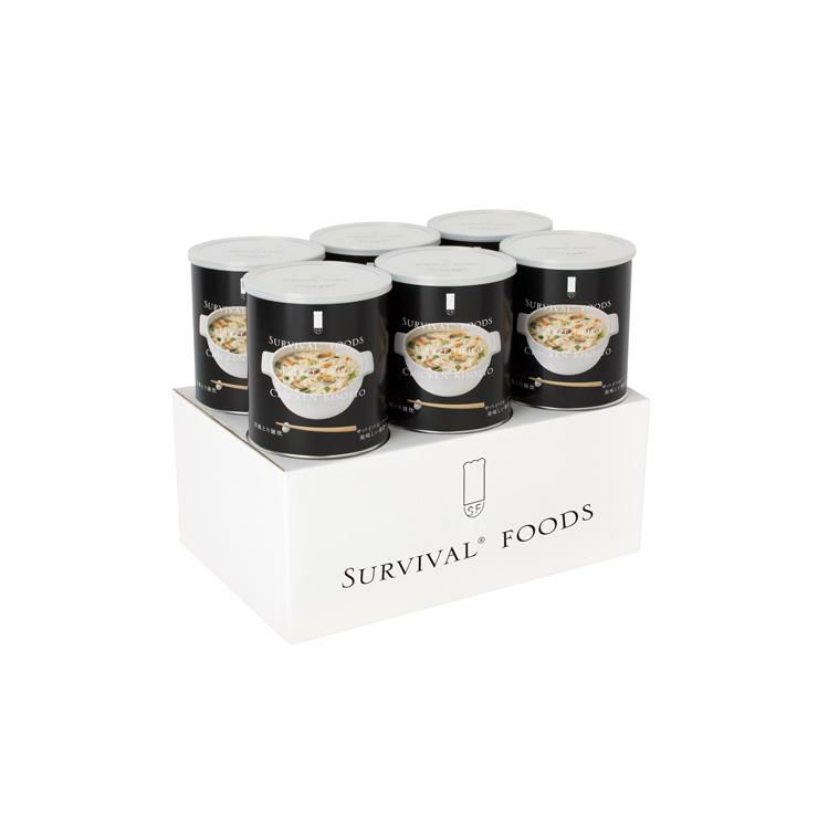 さらに、水を注ぐだけで調理できる「サバイバルフーズ」の缶詰は最長25年保存の超長期備蓄食。