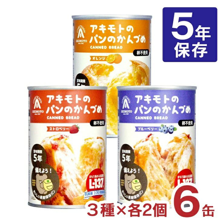 非常食 パン 缶詰 5年 パン アキモトのパンのかんづめ 乳酸菌入り 6缶セット アキモトのパン缶詰 備蓄 防災 保存食 長期保存