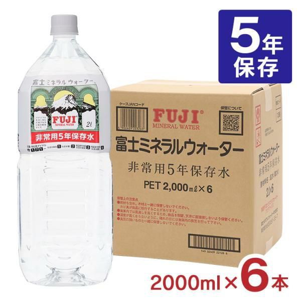 水 ミネラルウォーター 富士ミネラルウォーター 非常用 5年保存水 2L 6本 ペットボトル 2000ml 天然水 保存水 国産 備蓄 防災 保存水
