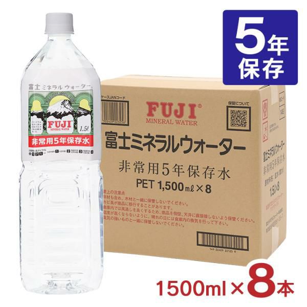 水 ミネラルウォーター 富士ミネラルウォーター 非常用 5年保存水 1.5L 8本 ペットボトル 天然水 保存水 国産 備蓄 防災 保存水