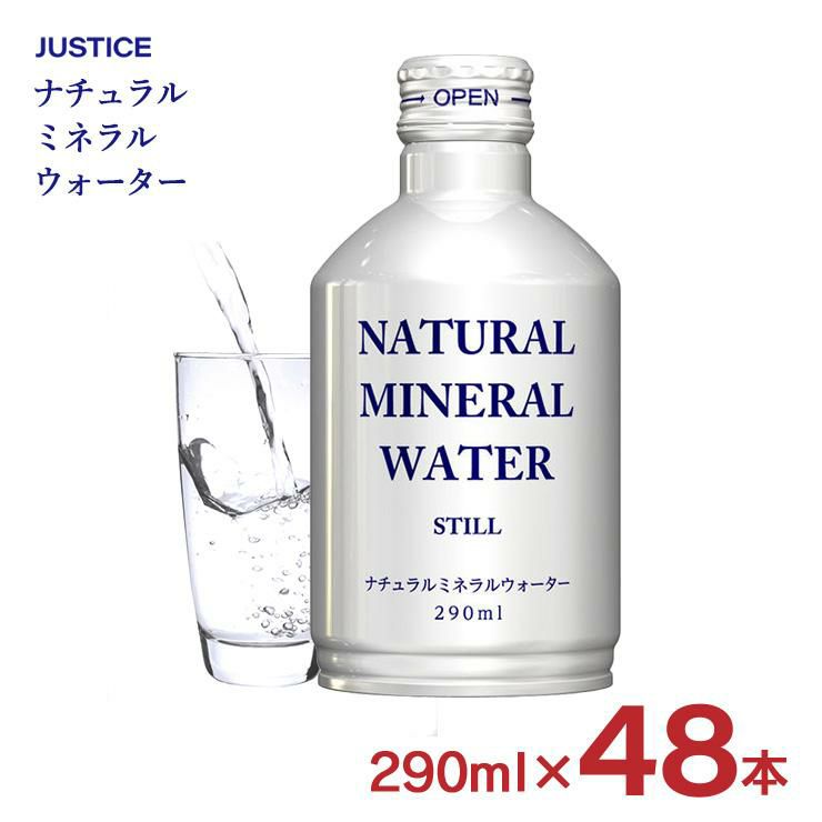 水 ミネラルウォーター 防災 ボトル 缶 ジャスティス ナチュラルミネラルウォーター 290ml 48本 保存水 備蓄 長期保存