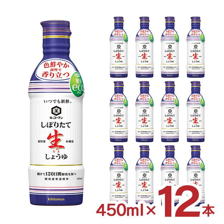 キッコーマン 醤油 いつでも新鮮 しぼりたて生しょうゆ 450ml 12本 キッコーマン食品