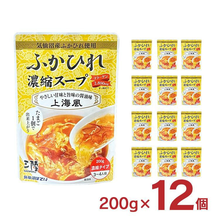 ふかひれ スープ ふかひれ濃縮スープ 上海風 200g 12個 レトルト パウチ 袋 気仙沼ほてい