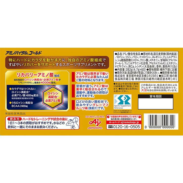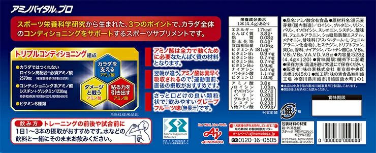 他の画像を見る アミノバイタル アクティブファイン 2.48g 60本 味の素 粉末 顆粒 スティック グレープフルーツ味 アミノ酸 ビタミン スポーツ サプリメント ¥ 5,240 税込 詳細を見る お気に入りに登録する