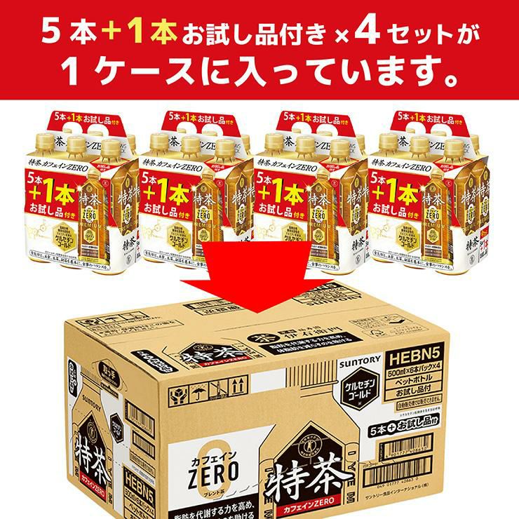他の画像を見る 【4本お試し】 特茶 カフェインZERO 500ml 20本 +お試し4本 1ケース 24本 サントリー カフェインゼロ 特定保健用食品 トクホ 特保 PET ¥ 4,180 税込 在庫切れ 詳細を見る お気に入りに登録する